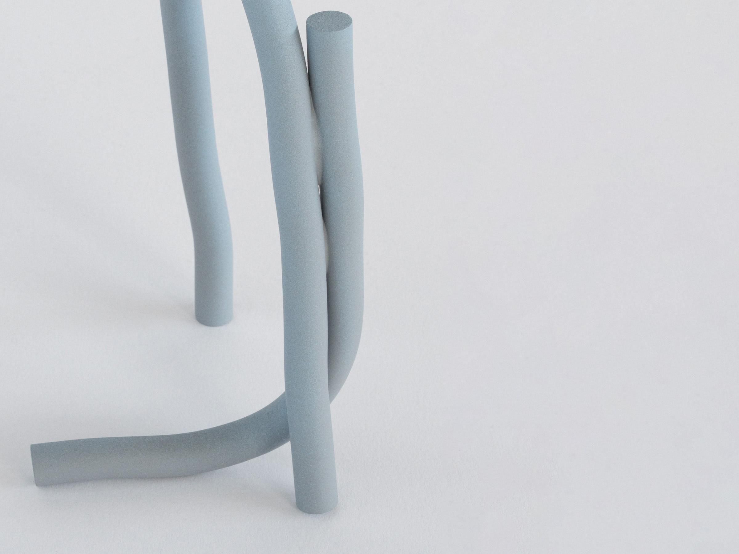 「Un Sua」は、直径10mmのアルミニウム棒を空調用パイプ用手曲げ機でランダムに曲げ、塗装を施したジュエリーを含むオブジェのコレクションです。